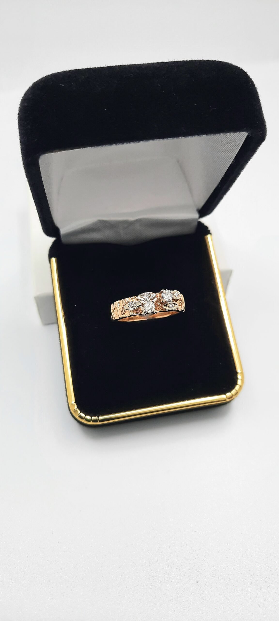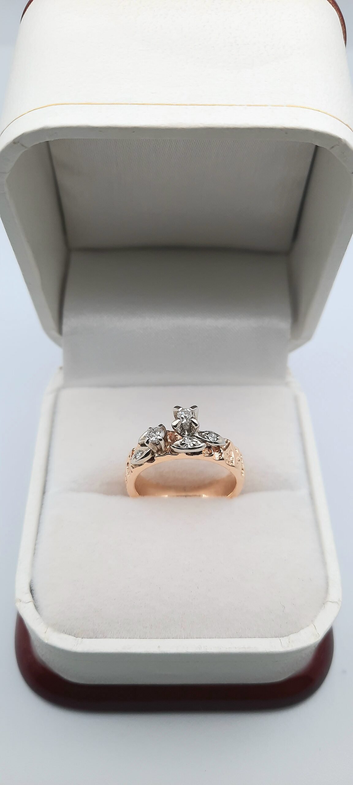 Vintage Art Deco 14K Two-Tone Gold Diamond Cluster Engagement Ring
