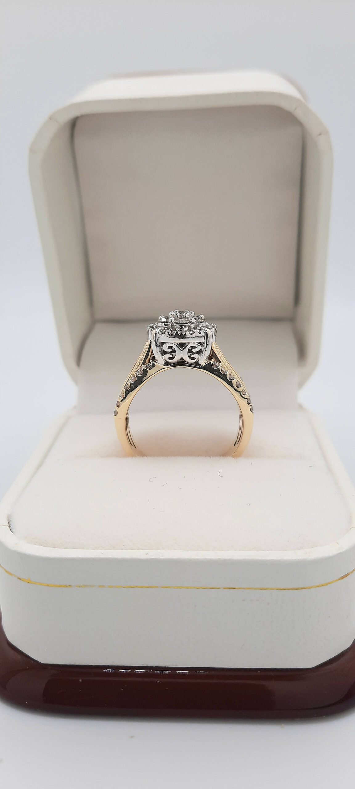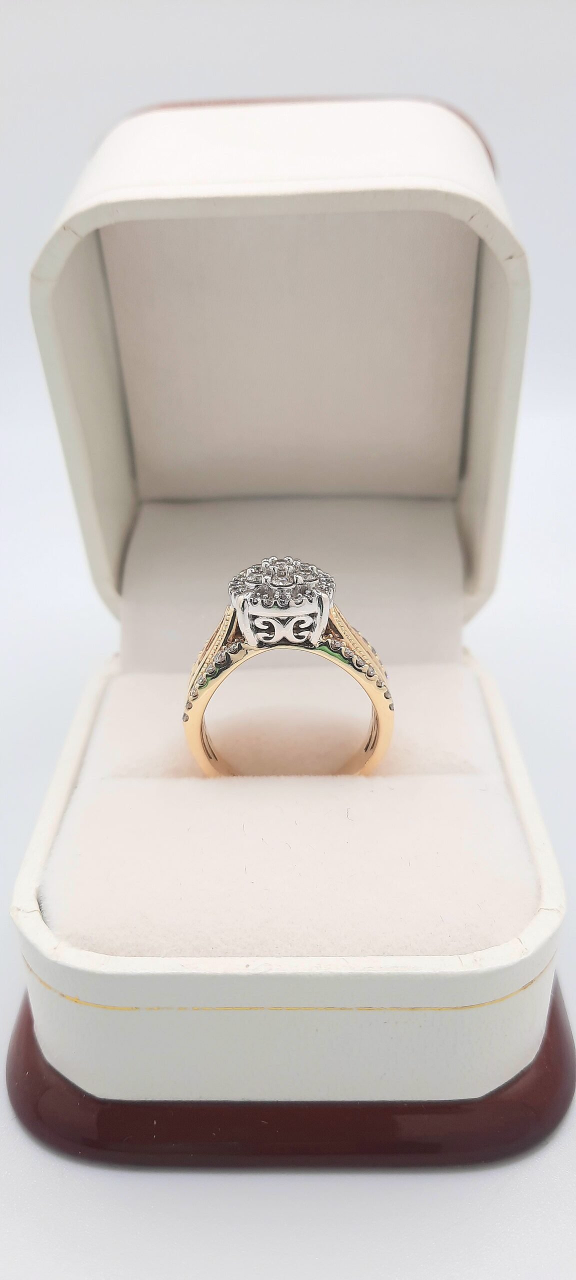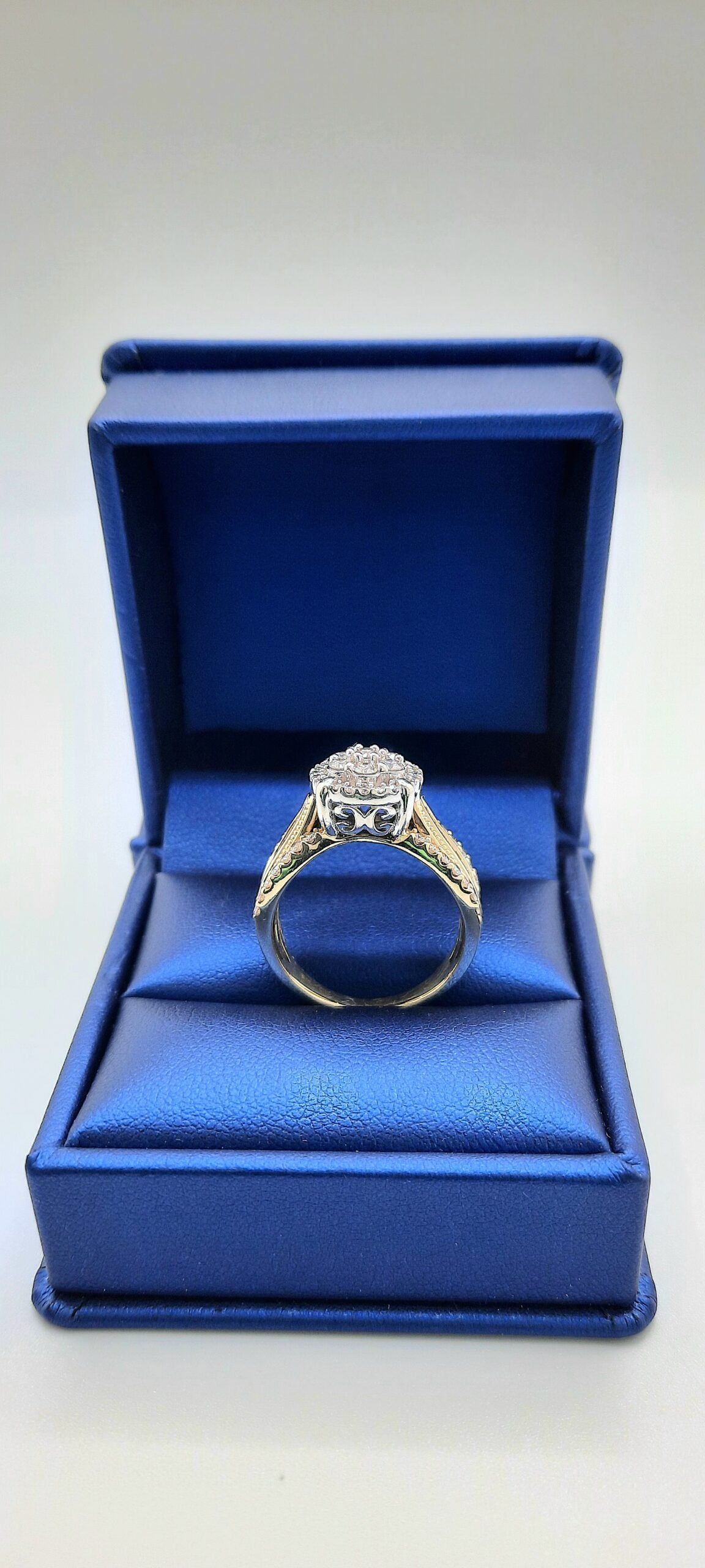 Vintage Inspired Two-Tone Flower Halo Diamond Engagement Ring
